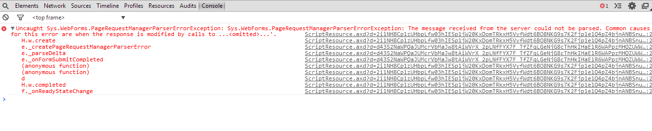 ​Sys.WebForms.PageRequestManagerServerErrorException: