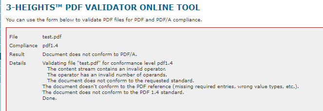 I check the validity here https://www.pdf-online.com/osa/validate.aspx