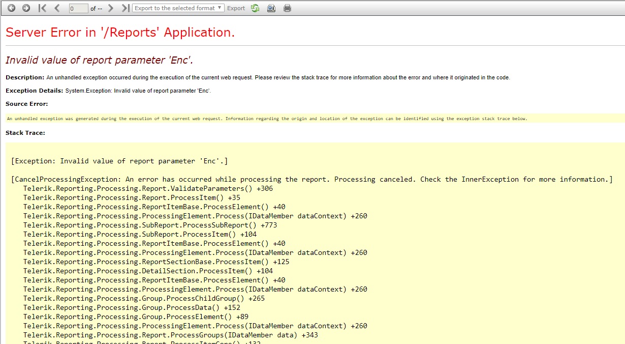 I'm upgrading a Production version of our Reporting App that is using version 10.1.16.615 to the newer 11.0.17.222. There are numerous changes although I have not touched one type of reports, but with the new version .dll's I'm getting "Invalid value of report parameter" (see attached screenshot) on those. These reports all have approximately 50 sub-reports, logo's and the typical Header/Footer combination, in other words, they are complex reports. The other 2/3 of reports display correctly, but these give me the error.