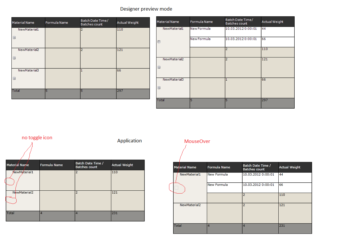 In Designer's preview mode all works good. But when report is showed by silverlight application, drilldown toggle button (with +/-) is not visible. Beside this it works good when i click on its place (place, where it should be).