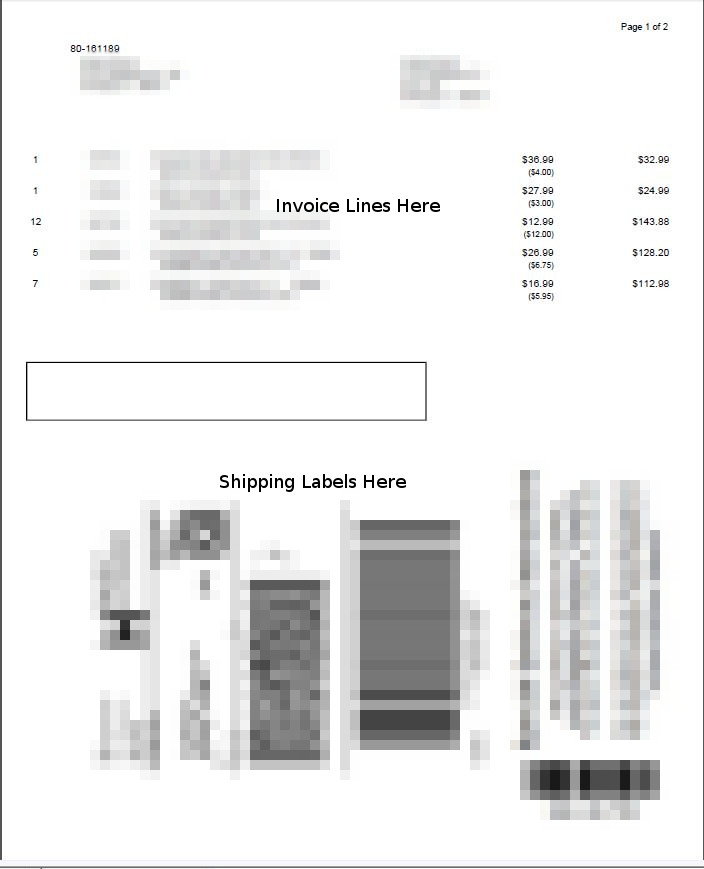- Shipping labels (some # of labels, one label per page, the number of labels is not necessarily related to the number of detail lines) -