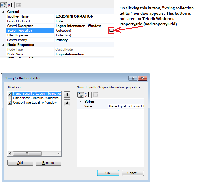 Previously, we were binding an object to the property grid, which in turn was displaying all the properties. If one of the properties is a collection it used be displayed in a collectioneditor when invoked from the property value.