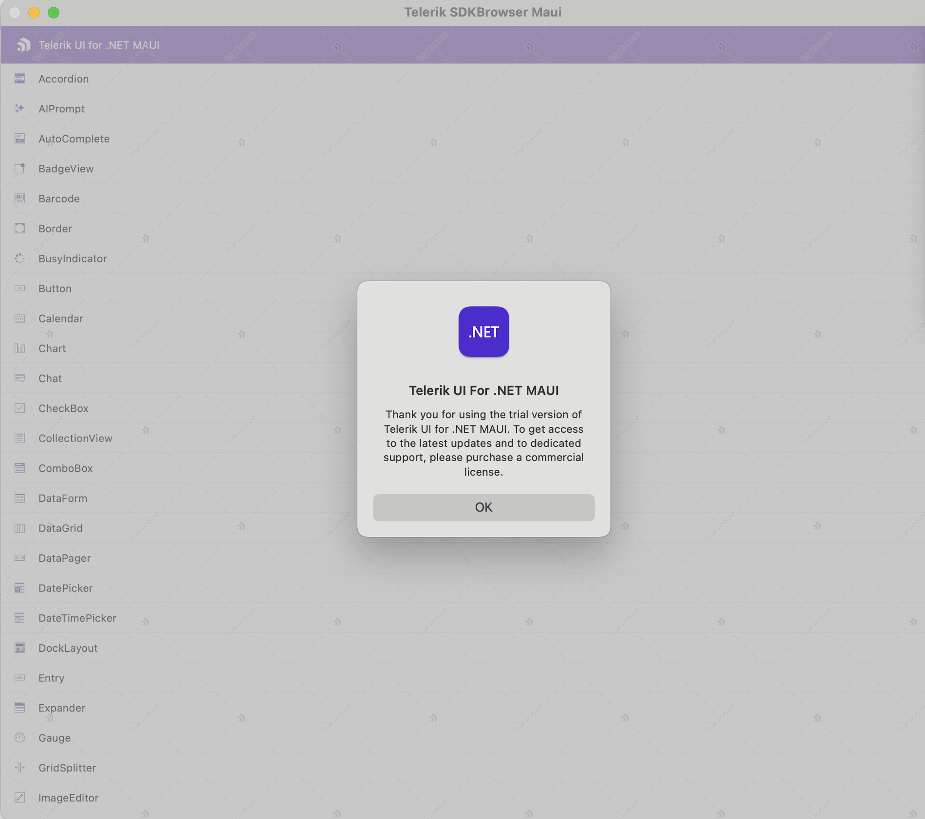 4. Build and run on MacCatalyst - the app works as expected when I close the trial popup