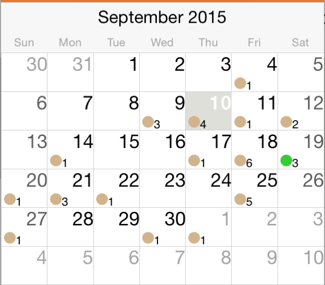 } } public override void Draw (CGRect rect) { base.Draw (rect); } }In few steps I've added a UILabel for the event title to appear next to your event shape, as you've mentioned that this is one of your goals. By using TKCalendarDayCell's Style property of type TKCalendarDayCellStyle you are able to customize the look of the cell and its components. In the above example some of them are demonstrated.