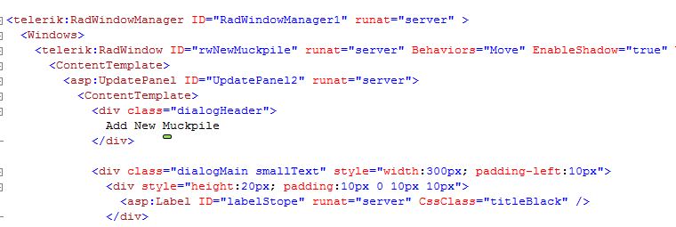 I'm trying to replace all instances of the Modal Popup Extender with RadWindow. I've enclosed a screenshot example of one of them. Simply put, I want to display a modal popup window and get the user to fill in a bunch of info.