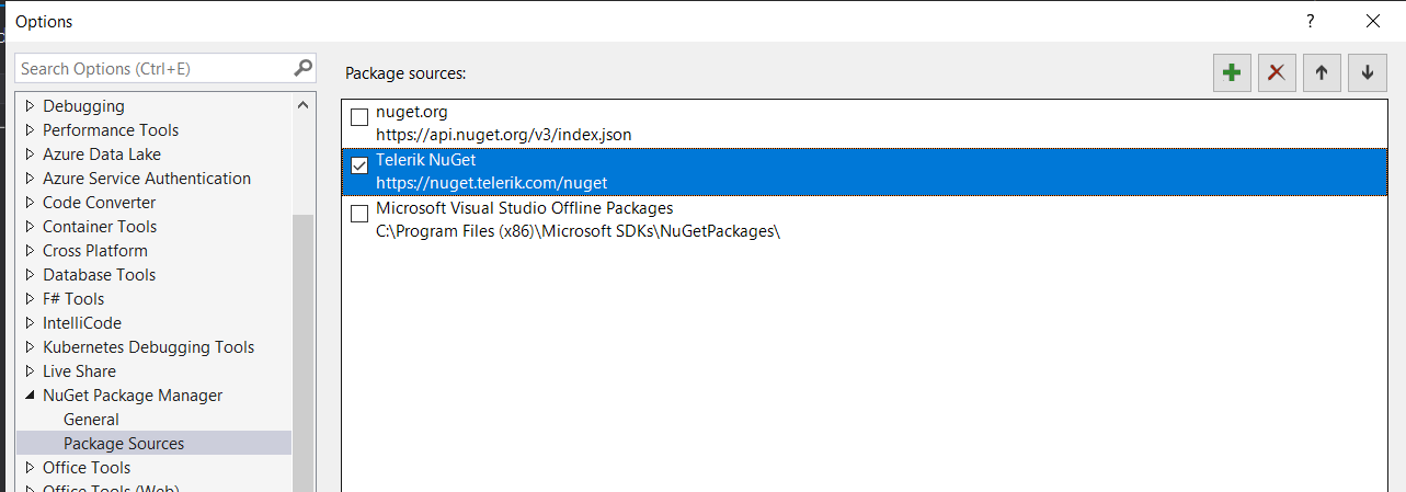 As a side note, I would like to suggest unticking all the package sources in the NuGet Manager (if any) except the https://nuget.telerik.com/nuget in order to be sure the packages are installed from the right NuGet server: