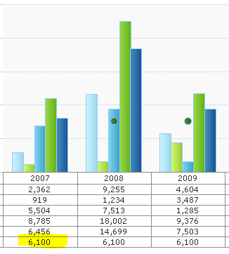 I have a chart with a datatable and I need to be able to have an empty value for one of the values. When I add the value as Nothing, the value is set to the next value in the series (6,100 in the attached image) and will show up as 6,100 in the datatable. I was able to make the point mark not show on the chart by setting the empty property to true, but I need to be able to set the value in the datatable to either a blank field or N/A. Is this possible?
