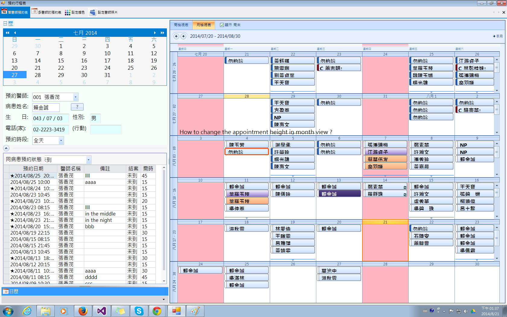 (1) How to change the appointment in month view?