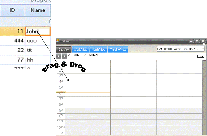 If there is a person call John in grid view that has a kind of an appointment, so when I drag that person from grid to scheduler the appointment should be automatically added to the selected place and time.