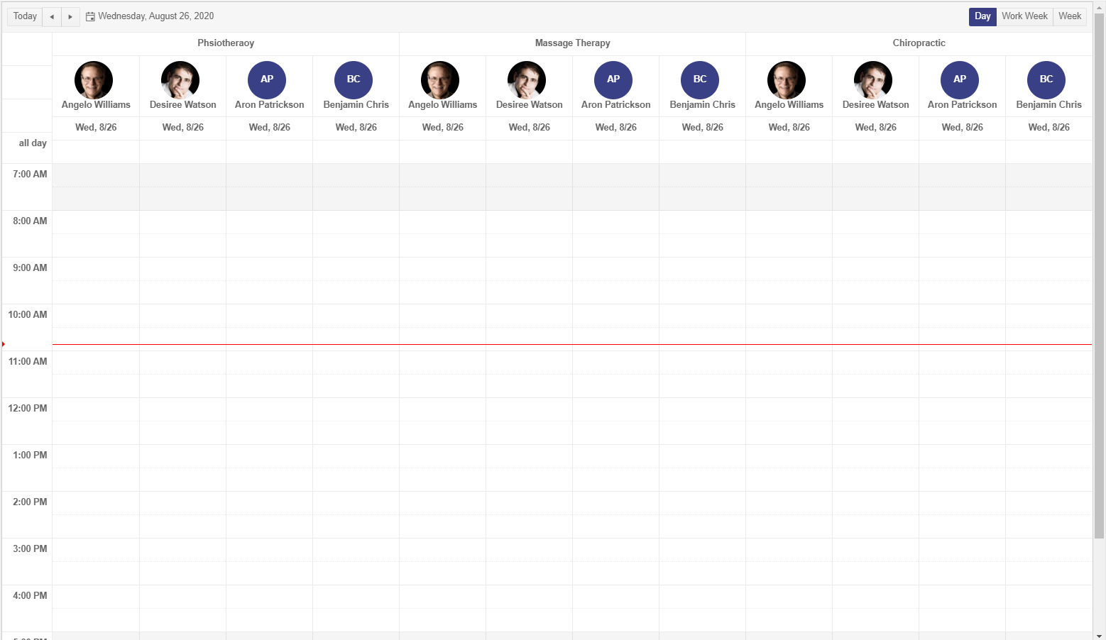 The question is, for example is it possible to only display [Angelo Williams, Desiree Watson] under [Phsiotheraoy], [Aron Patrickson] under [Massage Therapy] and [Benjamin Chris] under [Chiropractic]?