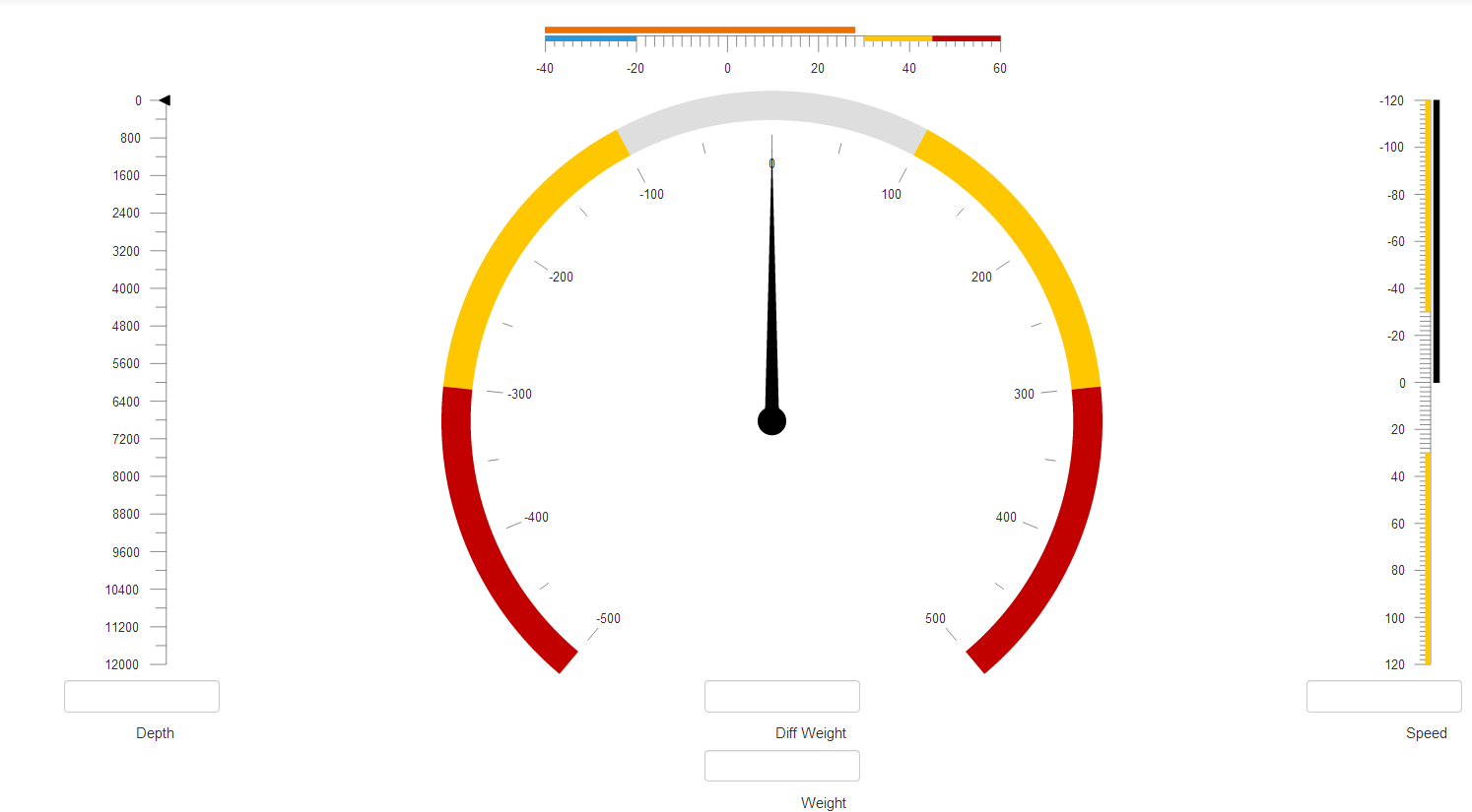 <script> function createSpeedGauge() { $("#speedBar").kendoLinearGauge({ pointer: { value: 0, color: "black", start: 0 }, scale: { majorUnit: 20, minorUnit: 2, min: -120, max: 120, vertical: true, reverse: true, ranges: [ { from: -120, to: -30, color: "#ffc700" }, { from: 120, to: 30, color: "#ffc700" } ] } }); } $(document).ready(function() { createSpeedGauge(); });</script>