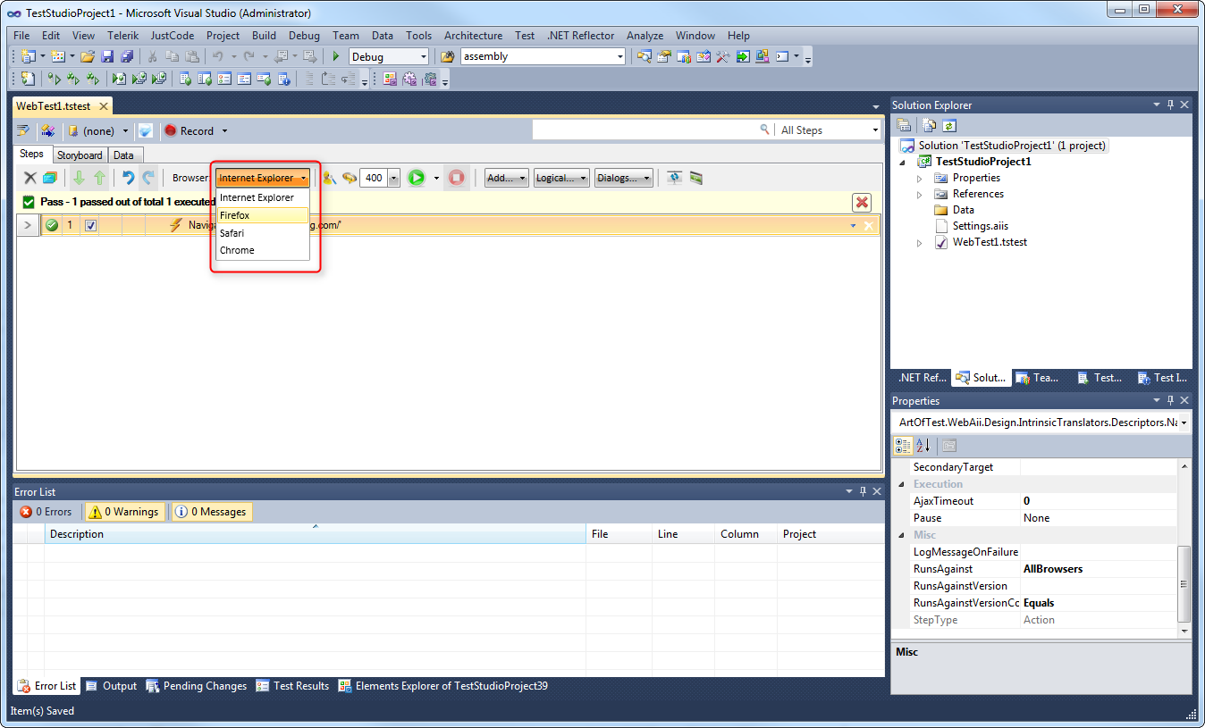 You can also execute the tests in all browsers under Visual Studio (see the attached screen shot).