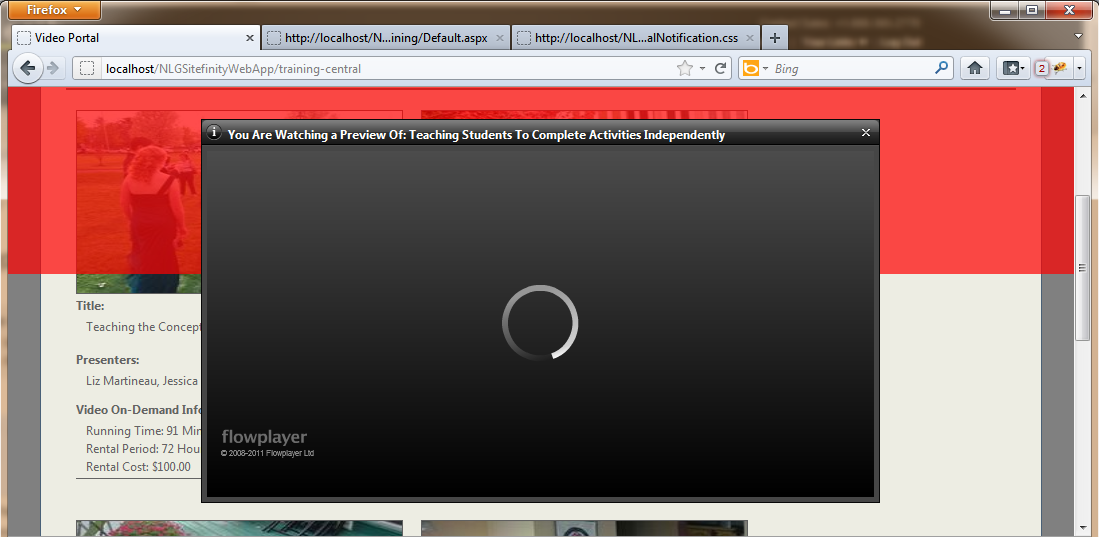 The sample mostly does the trick but the overlay div doesn't cover all of the content, it only extends the hieght of the browser client area. So when the browser window is scrolled vertically the overlay doesn't cover the scrolled area (see attached image). I've tried a number of css workarounds to try to fix this but nothing made much of a difference.