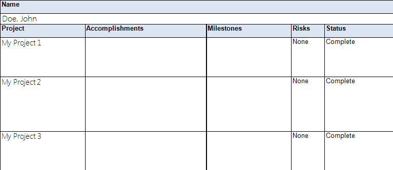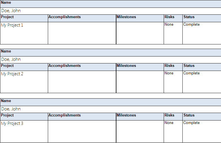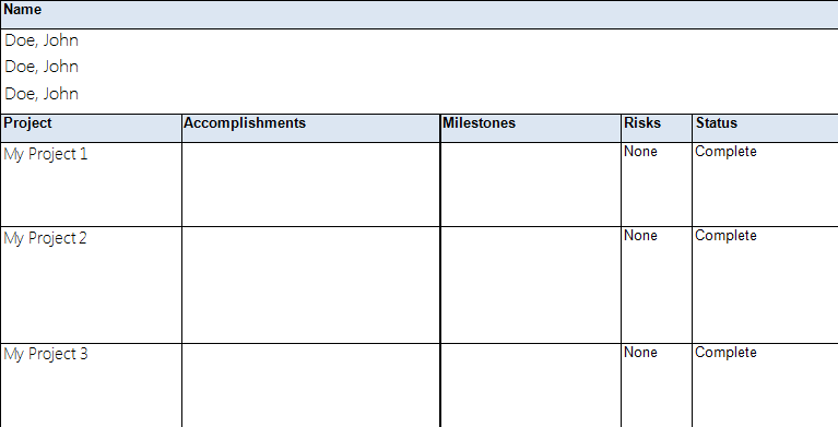 I have two tables, one with the header Name, and the other showing the projects associated with each name. I want the Name table to show only one value for name, with all corresponding projects listed in the 2nd table. However, where there is more than one project per name there will be that many duplicate names, which I don't want.