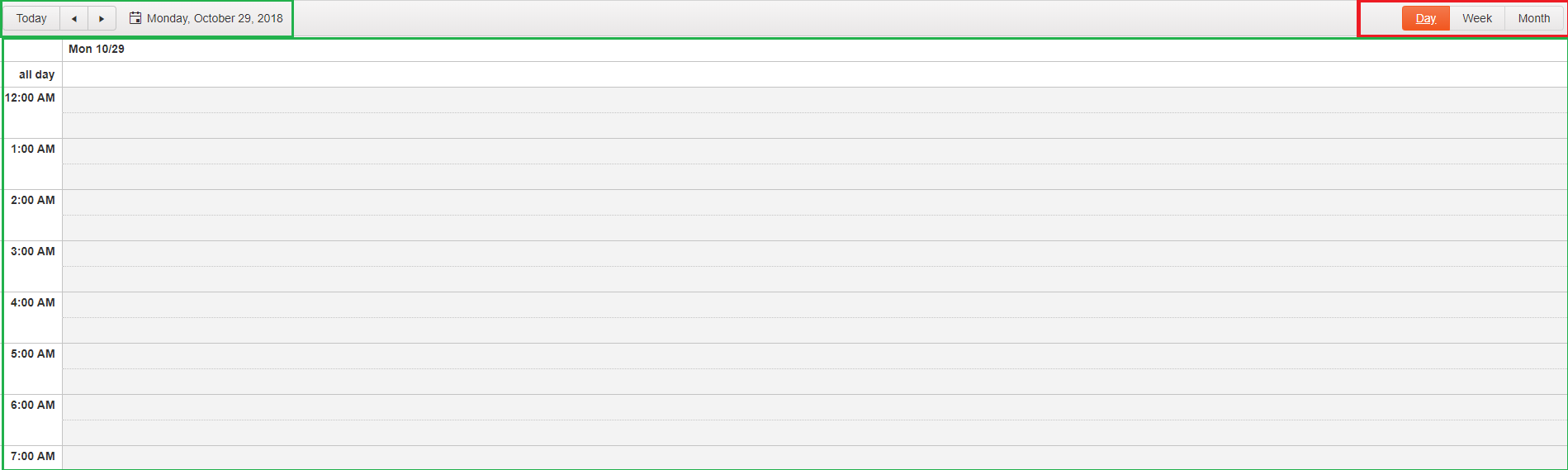 Hi, my requirement is quite simple, I just wanted to show the toggle buttons (day, week and month) of the scheduler (highlighted in red box - refer to attached image file). I don't want to show the timeline of the scheduler as well the current date (refer to attached image file - highlighted in green box) when the scheduler initially renders in the page. Is this doable?