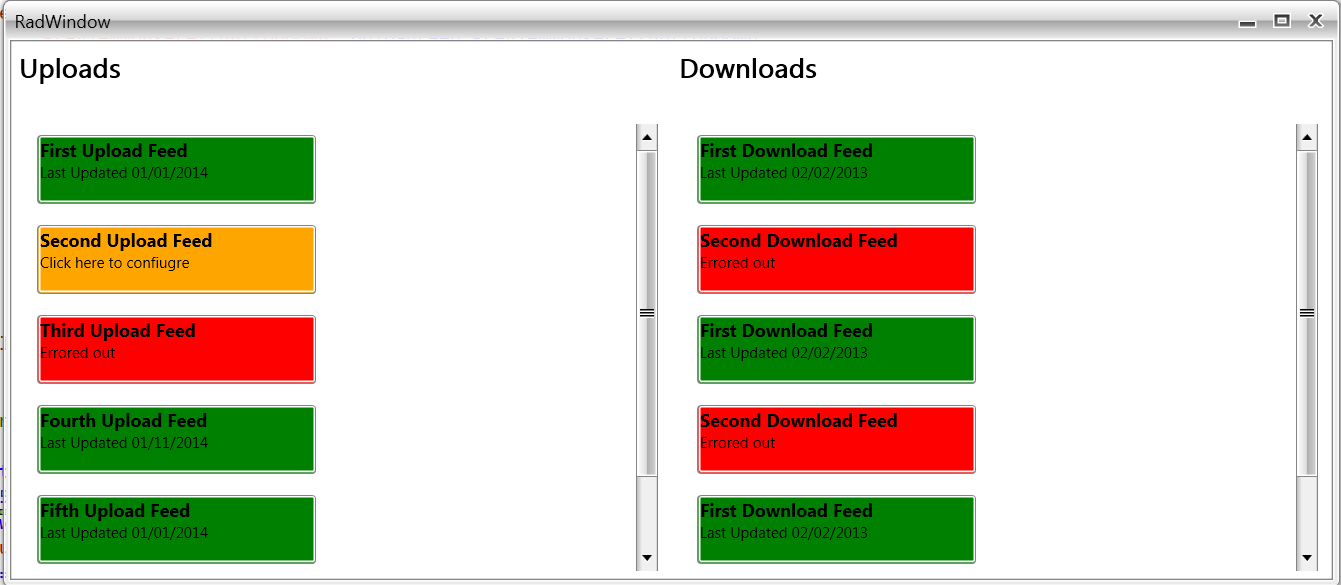I have two observable collections in my view model. My requirement is that i have to display one collection on the first column and the other collection on the second column of the RadWindow. I am currently using two RadTileView controls for this. Clicking on each tile will take the user to a different screen.