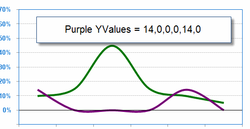 For example in the attached picture my yaxis values of the purple line are 14, 0, 0, 0, 14, 0