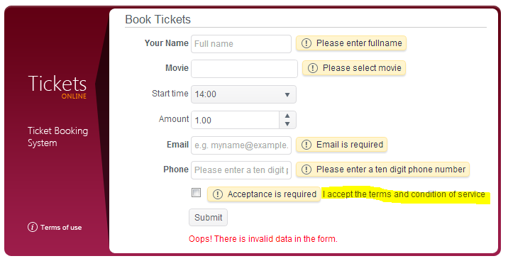 <input type="checkbox" id="accept" name="Accept" class="check" required validationMessage="You must agree to the Terms of Service." />