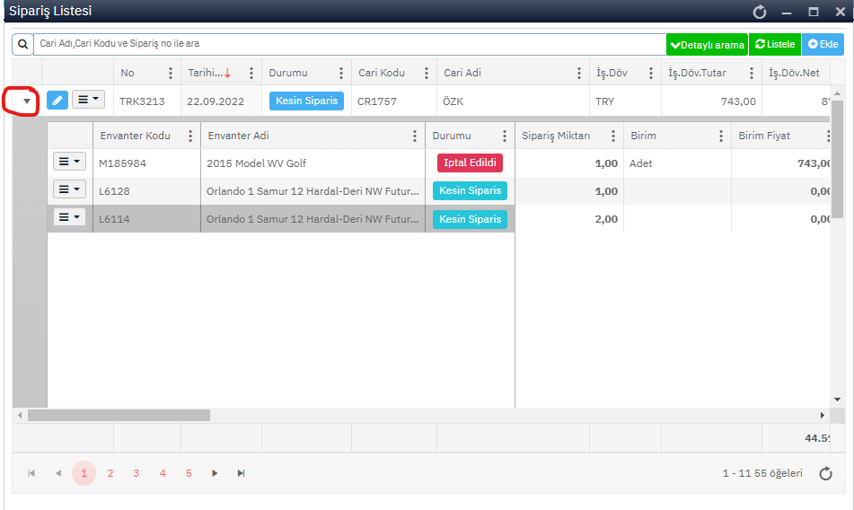 var ustGrid = $("#SiparisListeleGrid").data("kendoGrid");