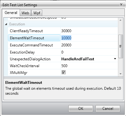 Thank you for asking! We have not yet properly documented this feature. There's a new setting contained in the test list settings that is your new global OnElementWaitTimeout property.