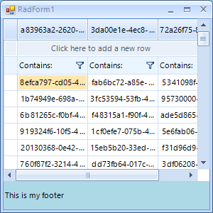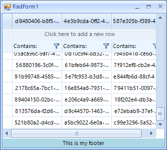 In order to simulate a footer in RadVirtualGrid, you can use the following code snippet which result is illustrated in the below screenshot: