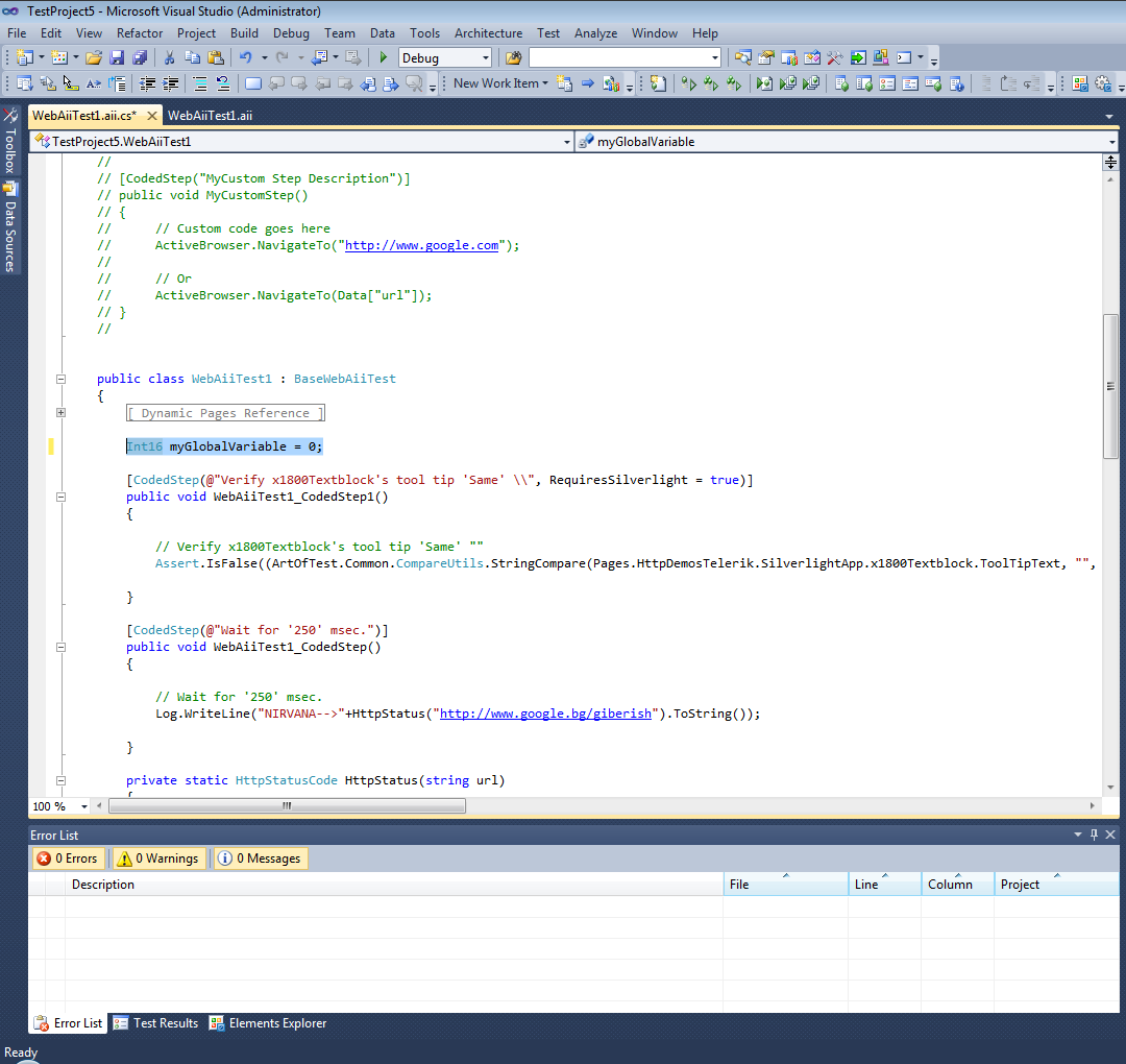 And i had another question - if there had some place could i keep some global variables which could be used in several customized test cases?