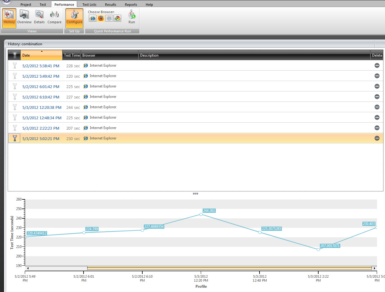 The theory behind Performance Testing is that you select a valid automated web test that you know will pass. The Performance tab is designed to show how well the web site performs from the view of a single user (and not whether the test passes or fails).
