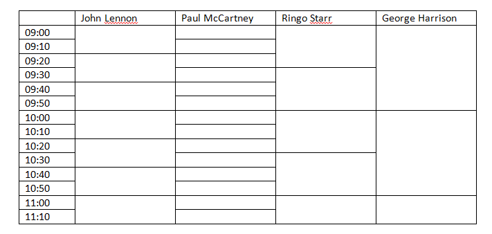 I am reviewing different scheduler controls, and i need this particular layout (attached image) where the user can see 4 doctors at the same time, but each one has different timeslots in wich they see the patients. In this case john lennon is 20 mins with each patient,