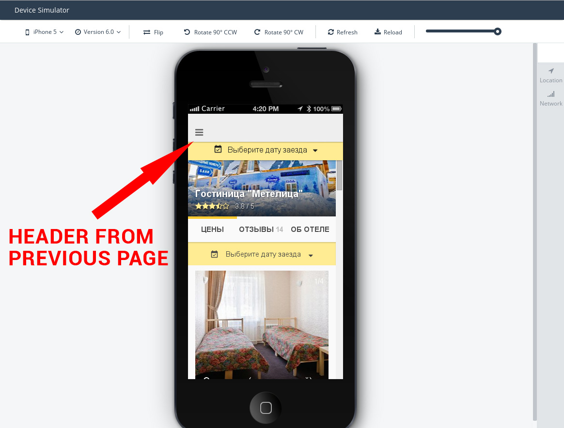When I press the button back, I pass from view3 to the view2, but with header from view1. This problem disappears only after reload app (simulator).