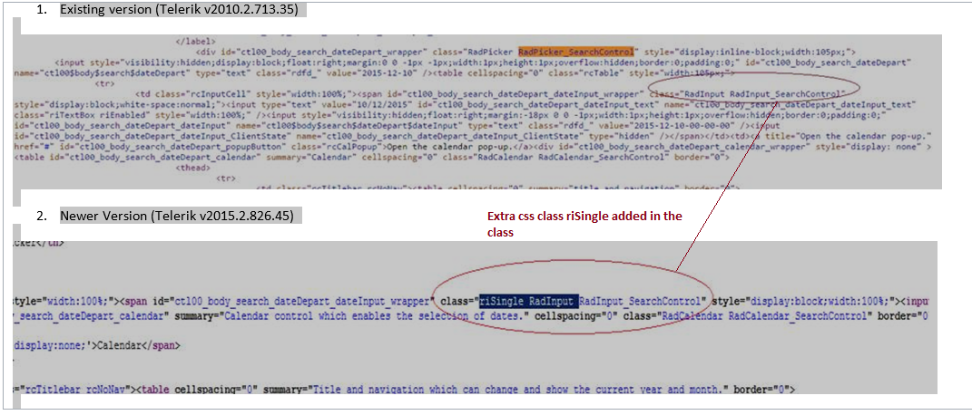 We are using the custom css based on our site design, some cssclass is misplaced with the Telerik control along with our custom css classes. Below is the screen shot with one example compared with the older version and the newer version.