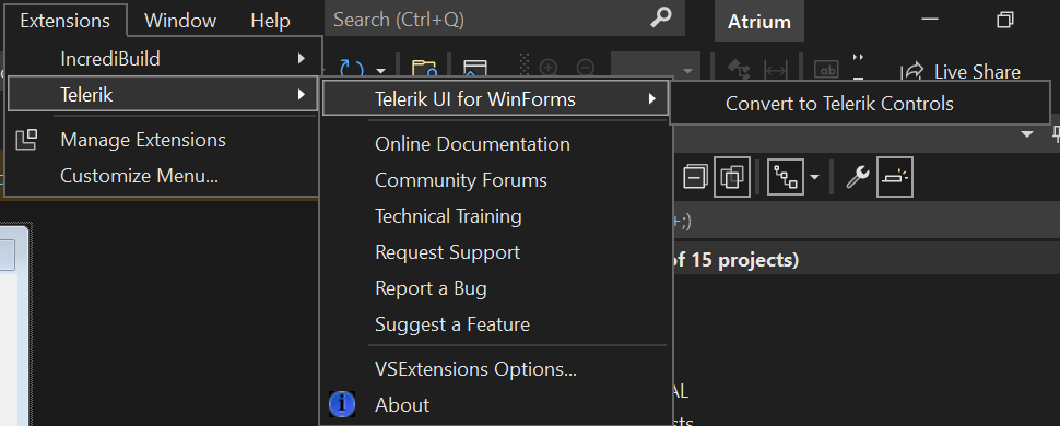 When I install the extension I get the error in the attached screenshot. I'm able to make the error go away temporarily by deleting the contents of %localappdata%\Microsoft\VisualStudio\17.0_001382ae\ComponentModelCache. But I still get errors when I try to build the solution that already contains Telerik components indicating that I am missing an assembly reference.