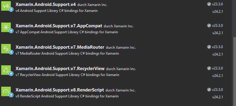 Or can i use newer Version of the package (Example: Xamarin.Android.Support.v4: your Version is 23.3, the latest Version is 24.2.1)?