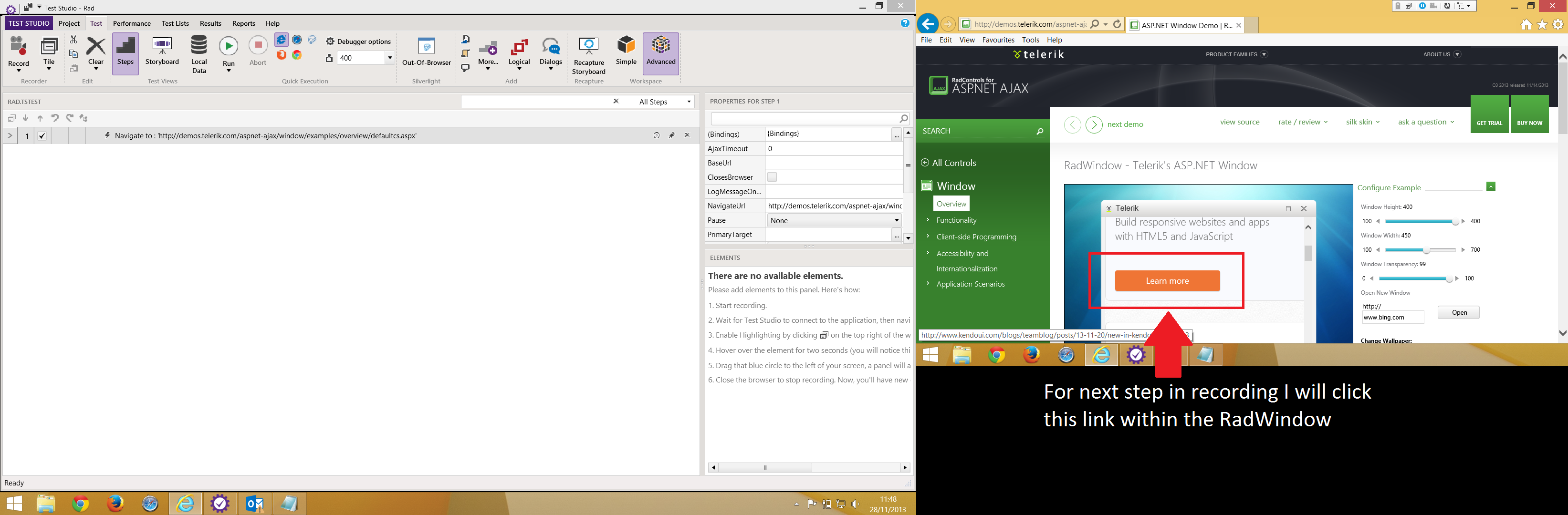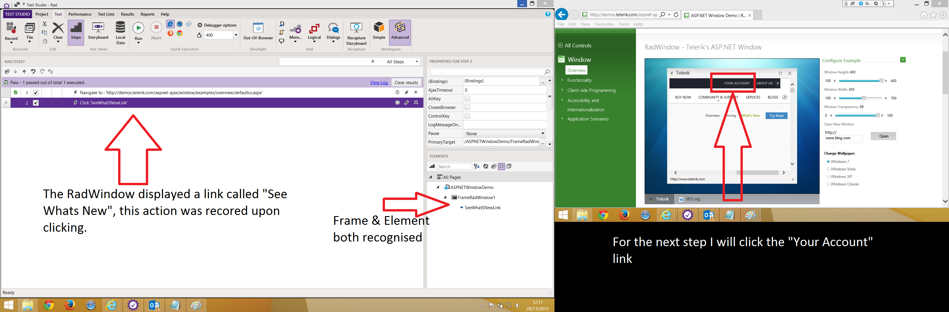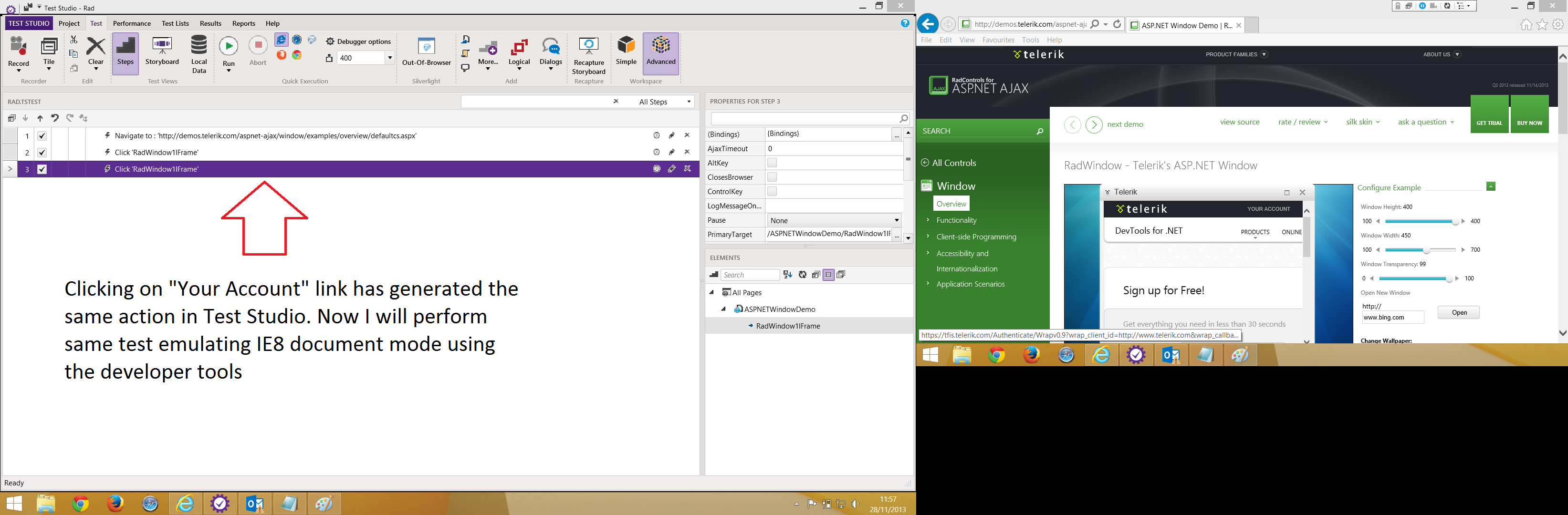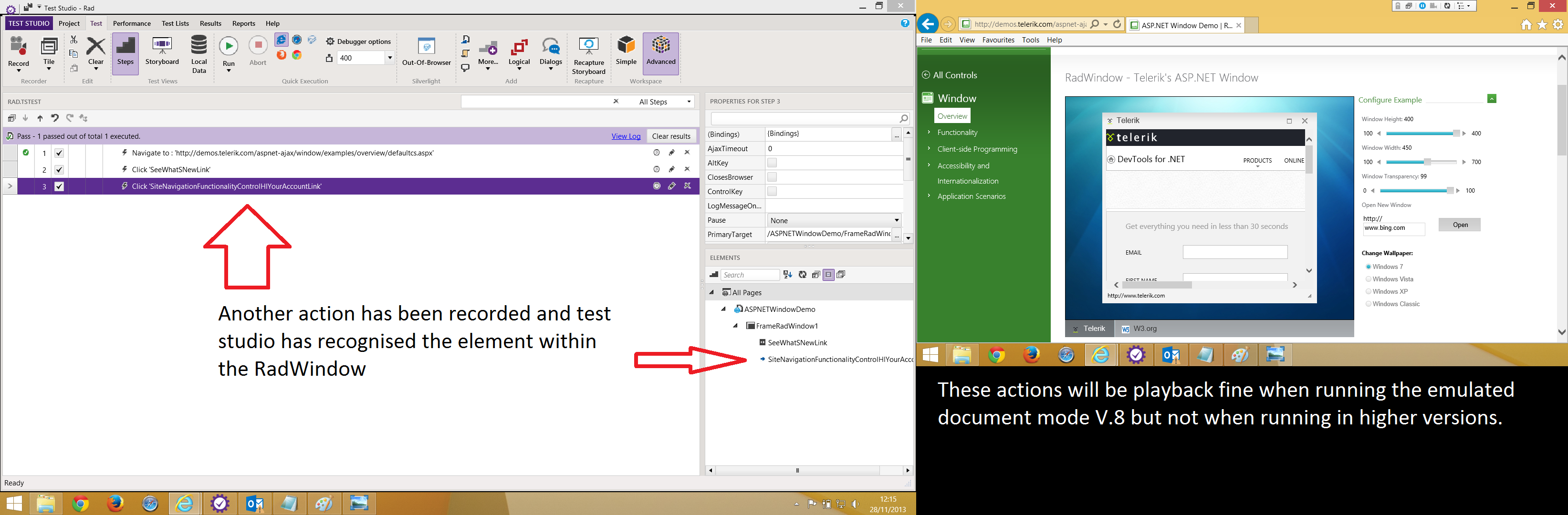 Could someone please provide me with a solution to record/playback actions on elements within a RadWindow for IE11 (or at least IE10) and Safari (5.1.7).