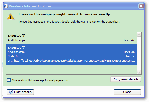 Webpage error details
