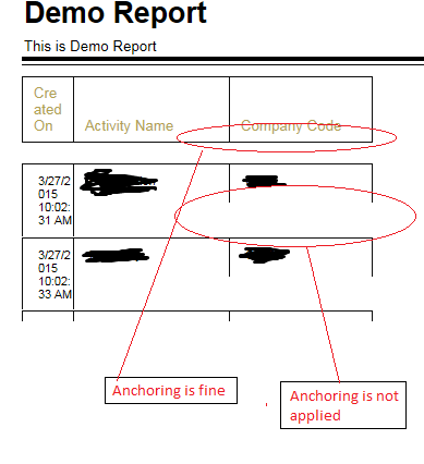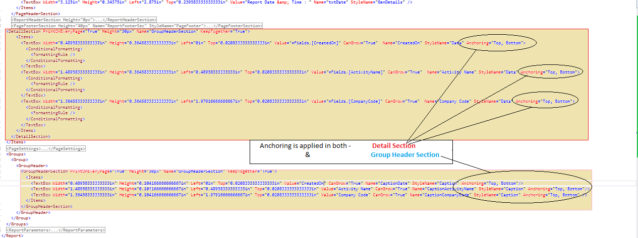 I am applying anchoring to Detail section as well as Group Header Section.