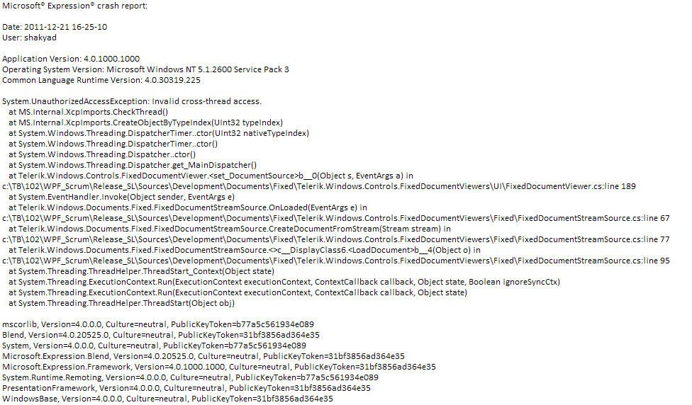 It was all working fine until I added PDF viewer to the project. Actually, it was working fine after added it as well.. but for some reason, now Blend crashes when I open the project with the error (attached).