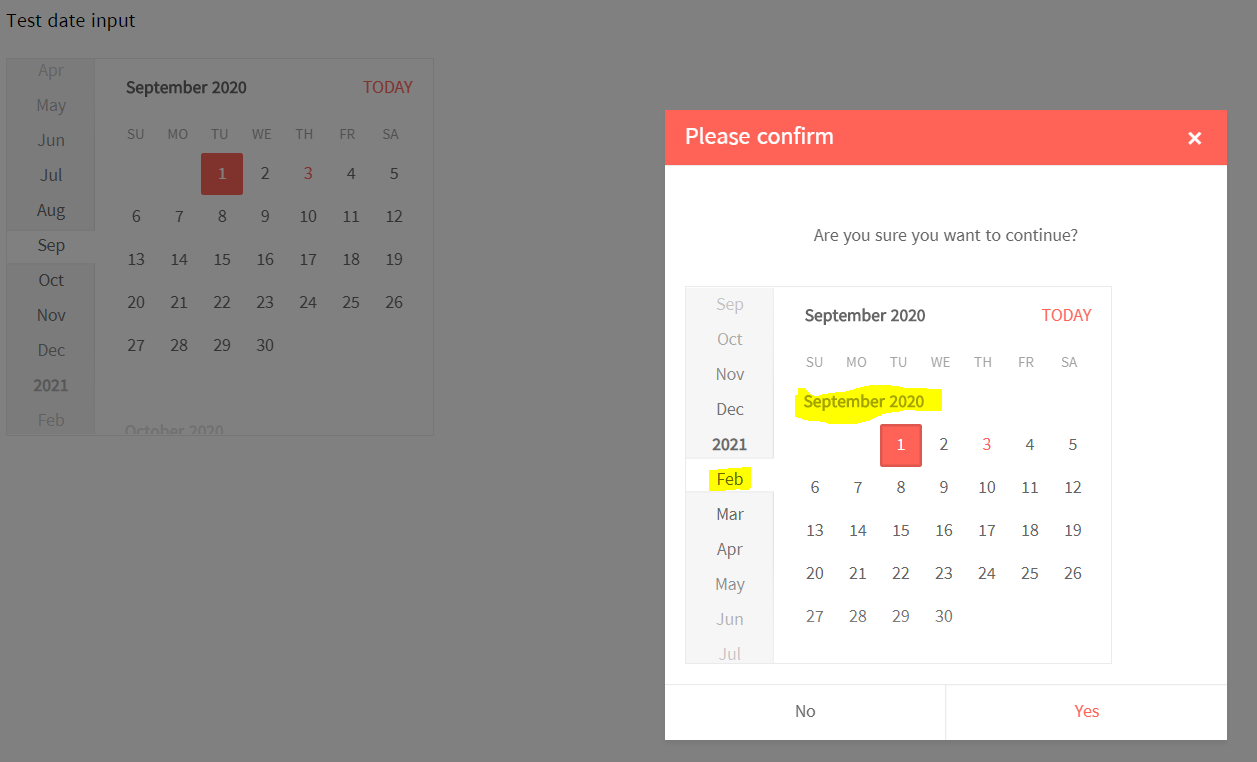 My component is required to include calendar in dialog control. But the calendar navigation is incorrect when the dialog box is open.