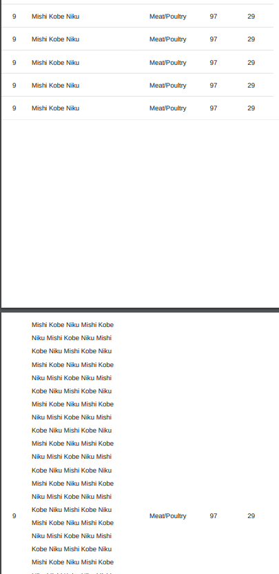 - Problem: The last row of the table content is shifted to the next page, leaving empty space on the previous page.