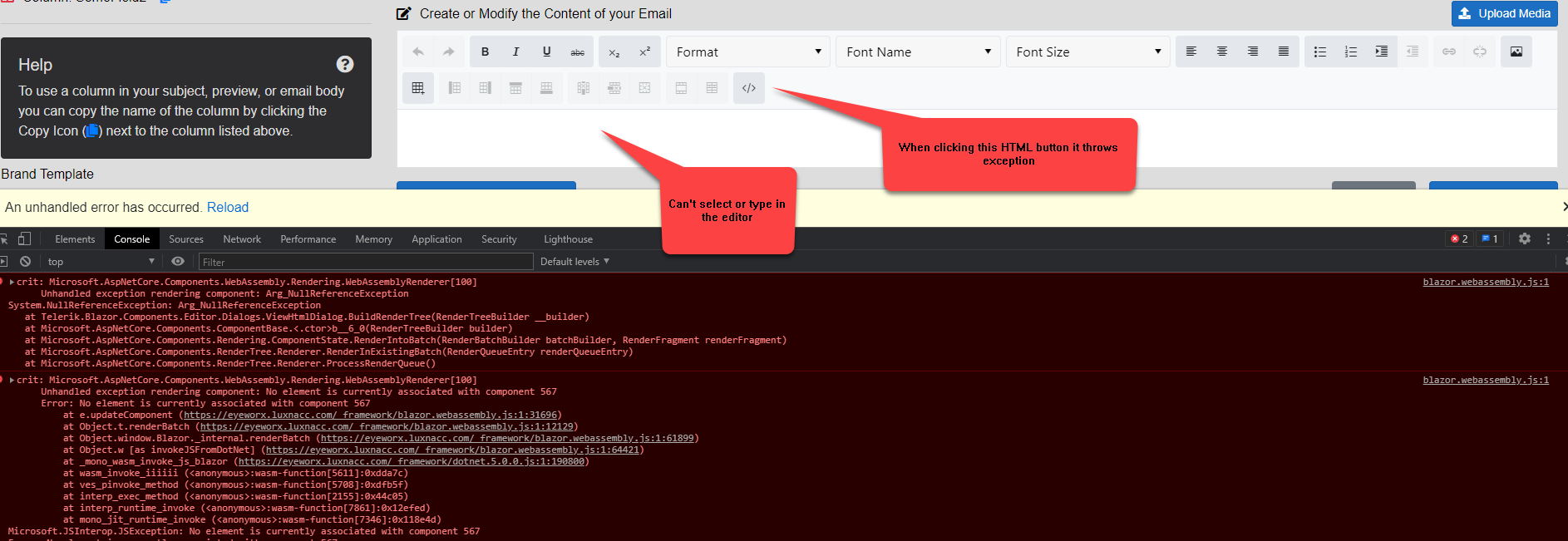 When we updated our packages to 2.21.0, it broke the Editor. I can no longer click inside the editor and type anything. When clicking the button to view the HTML it crashes. I reverted back to 2.20.0 where it works. No codes changes were made on our side.