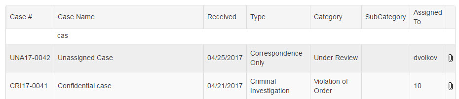 <telerik:RadGrid ID="RadGridOpenCases" runat="server" AutoGenerateColumns="False" DataSourceID="odsOpenCases" AllowPaging="True" PageSize="10" AllowSorting="True" AllowFilteringByColumn="true" Skin="Bootstrap"> <ExportSettings ExportOnlyData="true" IgnorePaging="true"></ExportSettings> <MasterTableView CellSpacing="-1" DataKeyNames="CaseID" DataSourceID="odsOpenCases" EnableNoRecordsTemplate="True" AllowFilteringByColumn="True" CommandItemDisplay="Top"> <CommandItemSettings ShowExportToExcelButton="true" ShowAddNewRecordButton="false" ShowRefreshButton="false" /> <Columns> <telerik:GridBoundColumn DataField="casenumber" HeaderText="Case #" SortExpression="casenumber" UniqueName="casenumber" ItemStyle-Wrap="false" AutoPostBackOnFilter="true" ShowFilterIcon="false" /> <telerik:GridBoundColumn DataField="subject" HeaderText="Case Name" SortExpression="subject" UniqueName="subject" AutoPostBackOnFilter="true" ShowFilterIcon="false" /> <telerik:GridDateTimeColumn DataField="datereceived" HeaderText="Received" SortExpression="datereceived" PickerType="DatePicker" EnableTimeIndependentFiltering="true" DataFormatString="{0:MM/dd/yyyy}" /> <telerik:GridBoundColumn DataField="subdivisiondesc" HeaderText="Type" SortExpression="subdivisiondesc" UniqueName="subdivisiondesc" AutoPostBackOnFilter="true" ShowFilterIcon="false" /> <telerik:GridBoundColumn DataField="categorydesc" HeaderText="Category" SortExpression="categorydesc" UniqueName="categorydesc" AutoPostBackOnFilter="true" ShowFilterIcon="false" /> <telerik:GridBoundColumn DataField="subcategorydesc" HeaderText="SubCategory" SortExpression="subcategorydesc" UniqueName="subcategorydesc" AutoPostBackOnFilter="true" ShowFilterIcon="false" /> <telerik:GridBoundColumn DataField="assignedto" HeaderText="Assigned To" SortExpression="assignedto" UniqueName="assignedto" AutoPostBackOnFilter="true" ShowFilterIcon="false" /> <telerik:GridBoundColumn DataField="casedoccount" HeaderText="" SortExpression="casedoccount" UniqueName="casedoccountid" AllowFiltering="false" /> </Columns> <NoRecordsTemplate> <p style="padding: 20px;">No cases to display</p> </NoRecordsTemplate> </MasterTableView> <GroupingSettings CaseSensitive="false" /> <ClientSettings EnableRowHoverStyle="true" EnablePostBackOnRowClick="true"> <Selecting AllowRowSelect="True" /> </ClientSettings> </telerik:RadGrid>My code-behind