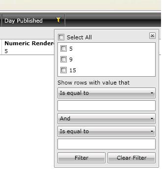 ColumnFilterDescriptor cfd = new ColumnFilterDescriptor(mainGrid.Columns["SomeColumn"]);cfd.FieldFilter.FieldName = col.Member;cfd.DistinctFilter.DistinctValues.Add(5); mainGrid.FilterDescriptors.Add(cfd);while it works, the UI display does not properly filter it. I've attached an image to show the issue.