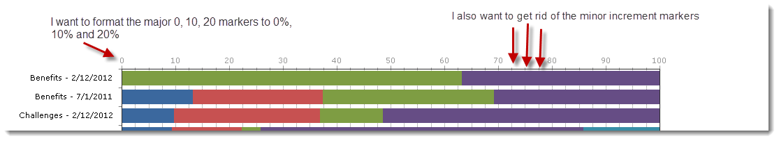 this.compareCityAvgReport.PlotArea.YAxis.AutoScale = false;this.compareCityAvgReport.PlotArea.YAxis.LabelStep = 1;this.compareCityAvgReport.PlotArea.YAxis.AddRange(0, 100, 10);this.compareCityAvgReport.PlotArea.YAxis.Appearance.ValueFormat = Telerik.Reporting.Charting.Styles.ChartValueFormat.Percent;this.compareCityAvgReport.PlotArea.YAxis.Appearance.CustomFormat = "#%";this.compareCityAvgReport.PlotArea.YAxis2.Visible = Telerik.Reporting.Charting.Styles.ChartAxisVisibility.True;this.compareCityAvgReport.PlotArea.YAxis2.AutoScale = false;this.compareCityAvgReport.PlotArea.YAxis2.AddRange(0, 100, 10);this.compareCityAvgReport.PlotArea.YAxis2.Appearance.Color = System.Drawing.Color.Black;this.compareCityAvgReport.PlotArea.YAxis2.Appearance.ValueFormat = Telerik.Reporting.Charting.Styles.ChartValueFormat.Percent;this.compareCityAvgReport.PlotArea.YAxis2.Appearance.CustomFormat = "#%";I aslo want to get rid on the 2.5 increment marker and just have the 10 increment maker in the report. I have marked up the image attached to this post with what I want to accomplish.