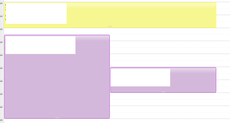 - Overlapping appointments are being hidden. If you look at the ungrouped calendar in day view there is an appointment from 1 - 2 that is hidden below the 10:30 - 5 appointment.