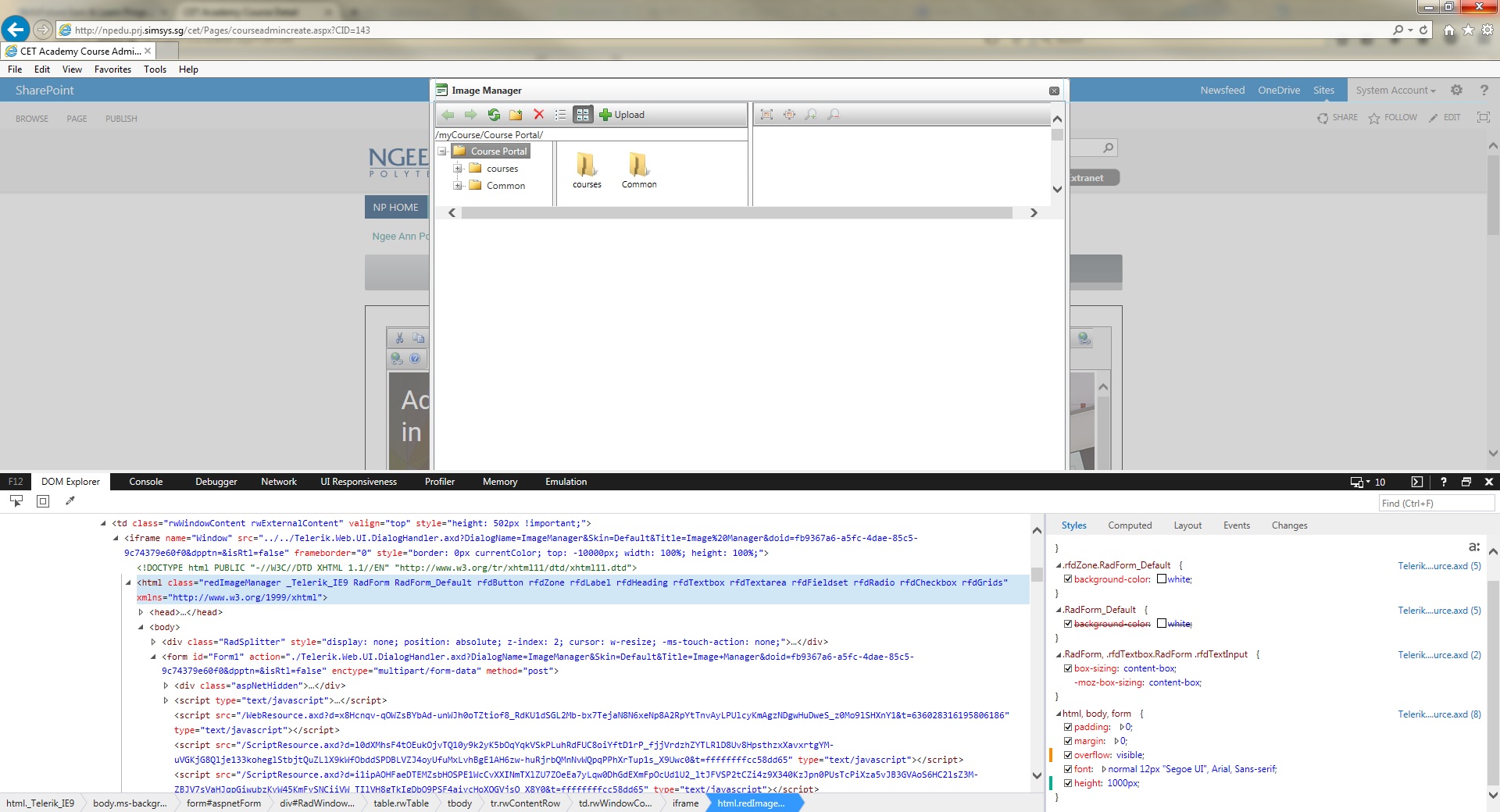 Hi, i have encounter some CSS issue with the Image manager and Document Manager dialog. and i cant seems to find the CSS causing this. i have customised the dialog aspx file for some customization but dont's seems to have any css inside it