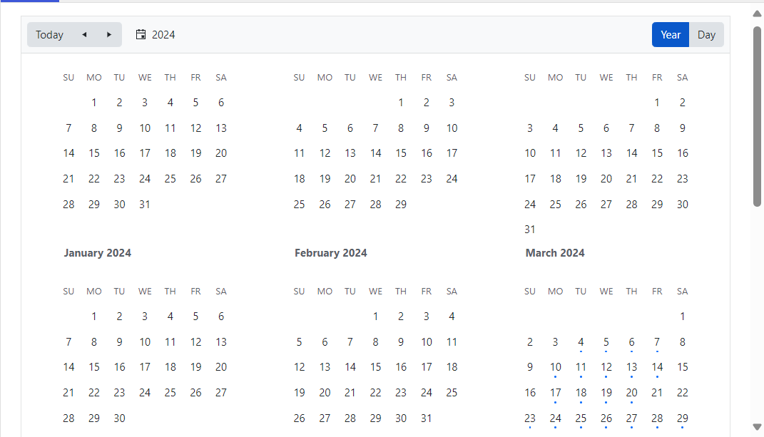 In addition to the design issue, I need to bind dynamic colors to the year view of the calendar. These colors will be fetched from an API. However, I'm unsure how to correctly implement this.