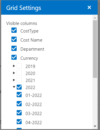 Previously, the grid component functioned correctly. However, after the update, labels in combo boxes that contain hierarchical items (years and months in our case) are not displaying correctly. Specifically, the label for the year is now rendering "behind" he checkbox and is only partially visible within the interface.