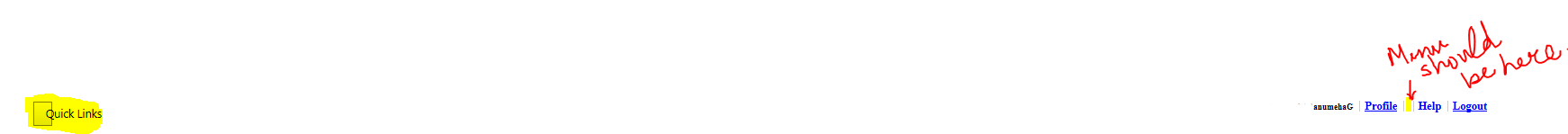 <table border="0" cellpadding="0" cellspacing="0" width="100%"> <tr> <td class="welcomeUser" colspan="3"> <div> <ul> <li class="welcomeuserli"> <asp:LoginView ID="_loginView" runat="server"> <LoggedInTemplate> <asp:LoginName ID="_loginName" runat="server" /> </LoggedInTemplate> </asp:LoginView> </li> <li class="welcomeuserli"> <asp:LoginView ID="LoginView1" runat="server"> <LoggedInTemplate> <span class="welcomeuserpipe"> </span> </LoggedInTemplate> </asp:LoginView> </li> <li class="welcomeuserli"> <asp:LoginView ID="LoginView2" runat="server"> <LoggedInTemplate> <asp:HyperLink runat="server" ID="linkProfile" NavigateUrl="~/welcome/personalinfo.aspx"> Profile</asp:HyperLink> </LoggedInTemplate> </asp:LoginView> </li> <li class="welcomeuserli"> <asp:LoginView ID="LoginView6" runat="server"> <LoggedInTemplate> <span class="welcomeuserpipe"> </span> </LoggedInTemplate> </asp:LoginView> </li> <li class="welcomeuserli"> <asp:LoginView ID="loginViewQuickLinks" runat="server"> <LoggedInTemplate> <telerik:RadMenu ID="rmQuickLinks" runat="server" BackColor="LightBlue" ForeColor="Black" Width="20px" > <Items> <telerik:RadMenuItem Text="Quick Links" CssClass="welcomeMenu"> <Items> <telerik:RadMenuItem NavigateUrl="https://www.nationwide.com/access/web/login.htm" Target="_blank" Text="Nationwide Login"> </telerik:RadMenuItem> </Items> </telerik:RadMenuItem> </Items> </telerik:RadMenu> </LoggedInTemplate> </asp:LoginView> </li> <li class="welcomeuserli"> <asp:LoginView ID="LoginView3" runat="server"> <LoggedInTemplate> <span class="welcomeuserpipe"> </span> </LoggedInTemplate> </asp:LoginView> </li> <li class="welcomeuserli"> <asp:LoginView ID="LoginView5" runat="server"> <LoggedInTemplate> <asp:HyperLink runat="server" ID="linkProfile"> Help</asp:HyperLink> </LoggedInTemplate> </asp:LoginView> </li> <li class="welcomeuserli"> <asp:LoginView ID="LoginView4" runat="server"> <LoggedInTemplate> <span class="welcomeuserpipe"> </span> </LoggedInTemplate> </asp:LoginView> </li> <li class="welcomeuserli"> <asp:LoginView ID="_loginViewStatus" runat="server"> <LoggedInTemplate> <asp:LoginStatus ID="_loginStatus" runat="server" meta:resourcekey="_loginStatusResource1" /> </LoggedInTemplate> </asp:LoginView> </li> </ul> </div> </td> </tr> </table>the css for the ul:.welcomeUser{ font-size: 9px; font-weight: bold; text-align:right; padding-top: 7px; padding-left: 2px; line-height: 0.75;}.welcomeUser a{ color: blue; font-size: 12px;}.welcomeuserli { display:inline; list-style-type:none; padding-right:0.25em; padding-left:0.25em;} .welcomeuserpipe{ color: #ccc; font-size: 10px; border-right: 1px solid #ccc;}.welcomeMenu{ padding: 1px; float: none;}PS: I have another menu beneath it for my website navigation so I don't want to change the css file for Menu.