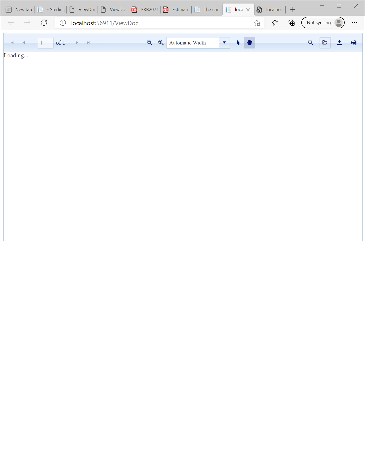 <telerik:RadAjaxPanel runat="server"> <telerik:RadButton runat="server" ID="RadButtonLoadGood" RenderMode="Lightweight" Text="Load Good Doc" OnClick="RadButtonLoadGood_Click" /> <telerik:RadButton runat="server" ID="RadButtonLoadBad" RenderMode="Lightweight" Text="Load Bad Doc" OnClick="RadButtonLoadBad_Click" /> <telerik:RadPdfViewer runat="server" ID="RadPdfViewer2" Height="550px" Width="100%" Scale="0.9"> <PdfjsProcessingSettings> </PdfjsProcessingSettings> </telerik:RadPdfViewer></telerik:RadAjaxPanel>Hi Brian,