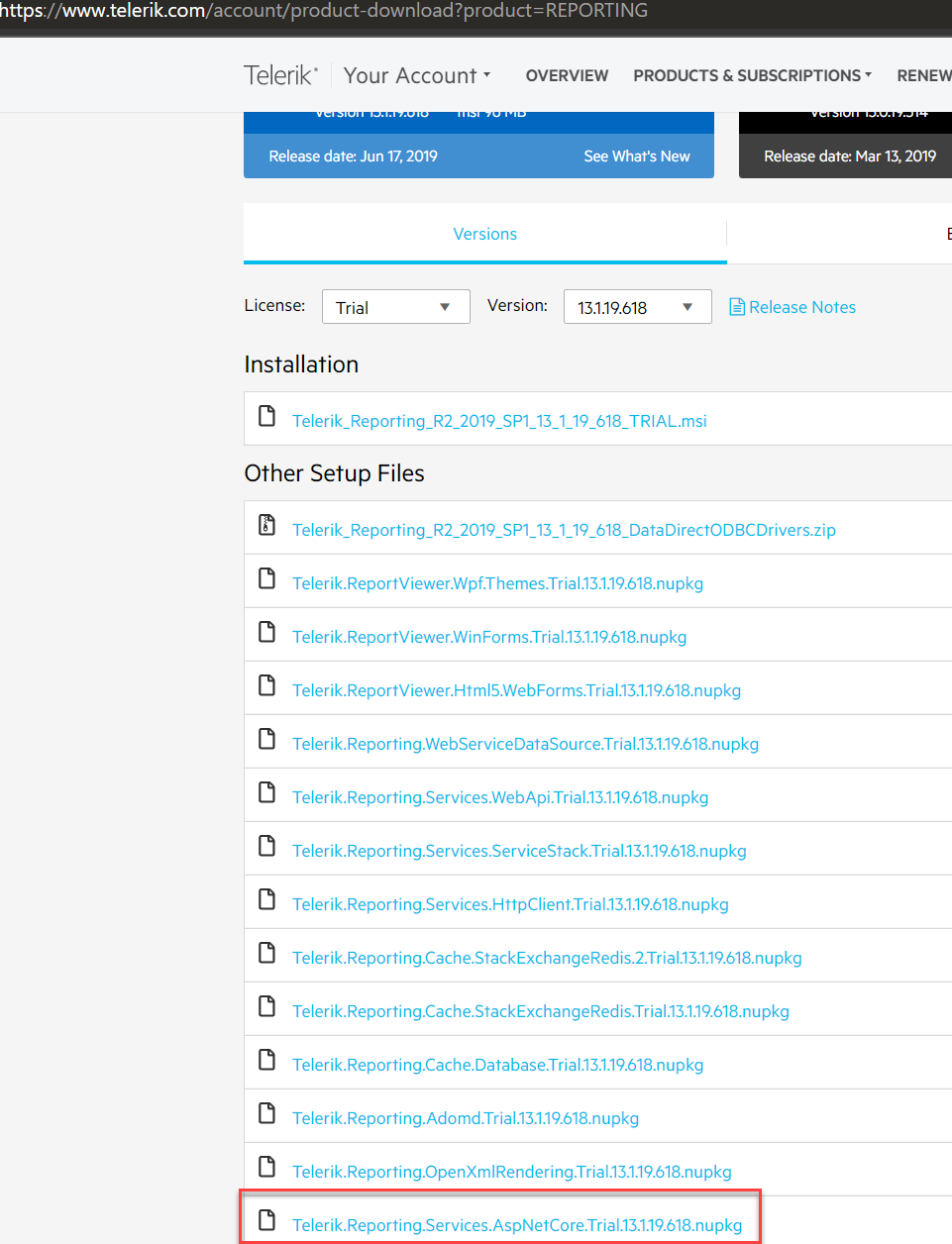 While you're in there, you can scroll down to the Telerik.Reporting.Services.AspNetCore.Trial folder to see if it was installed correctly and if the nuspec is present. I double checked that the nuspec was included on my machine and can confirm it is there.