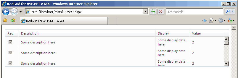 | <telerik:GridCheckBoxColumn DataField="IsRequired" HeaderText="Req" UniqueName="IsRequired"> | |